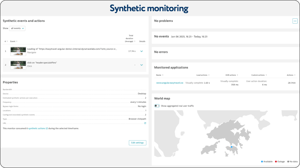With synthetic monitoring, you will easily understand how well your application complies with the SLA.