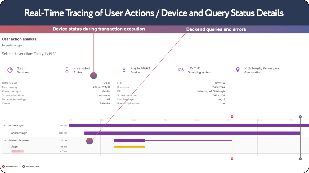 Real-time tracing of users’ actions + / device and query status: you can see the device status,